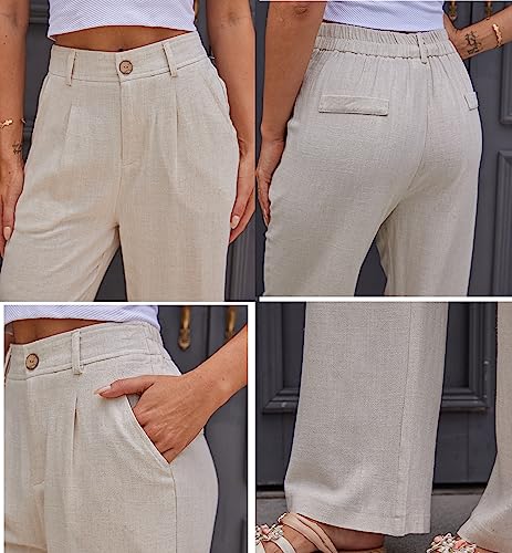 heipeiwa Women's Linen Casual High Waist Wide Leg Straight Dress Cotton Linen Pants Button Trousers