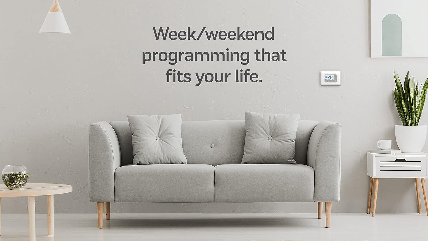 With the 5-2 Day Programmable Thermostat, you can set a schedule of comfort while you’re home, and help save energy while you’re away. Easily program the thermostat to fit your lifestyle — week and weekend. Plus, this thermostat delivers on the must-have features you want including a large, backlit display that shows current and set temperatures and a real-time clock — and reminders for filter changes and low batteries.
