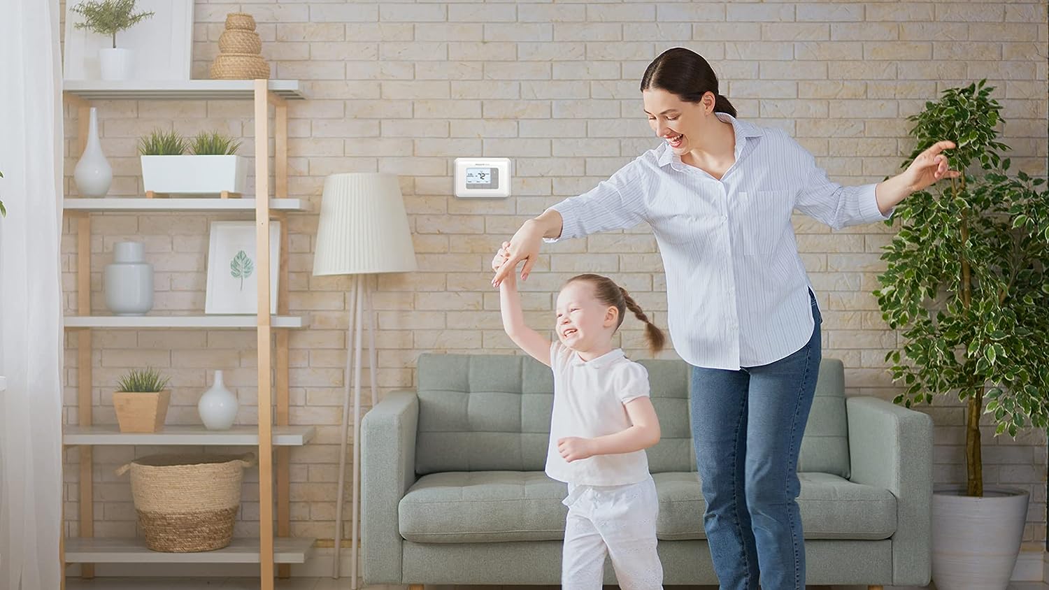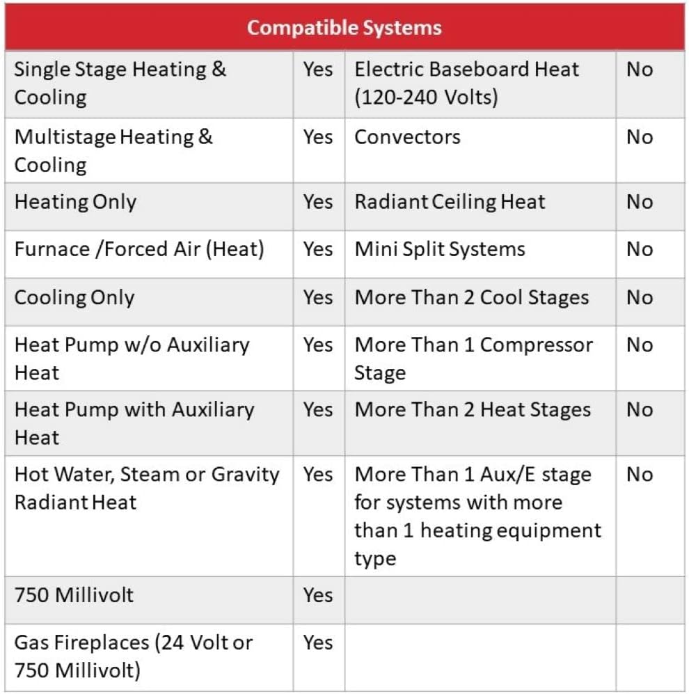 • Features auto changeover between heat and cool and reminder alerts for low batteries and filter changes.