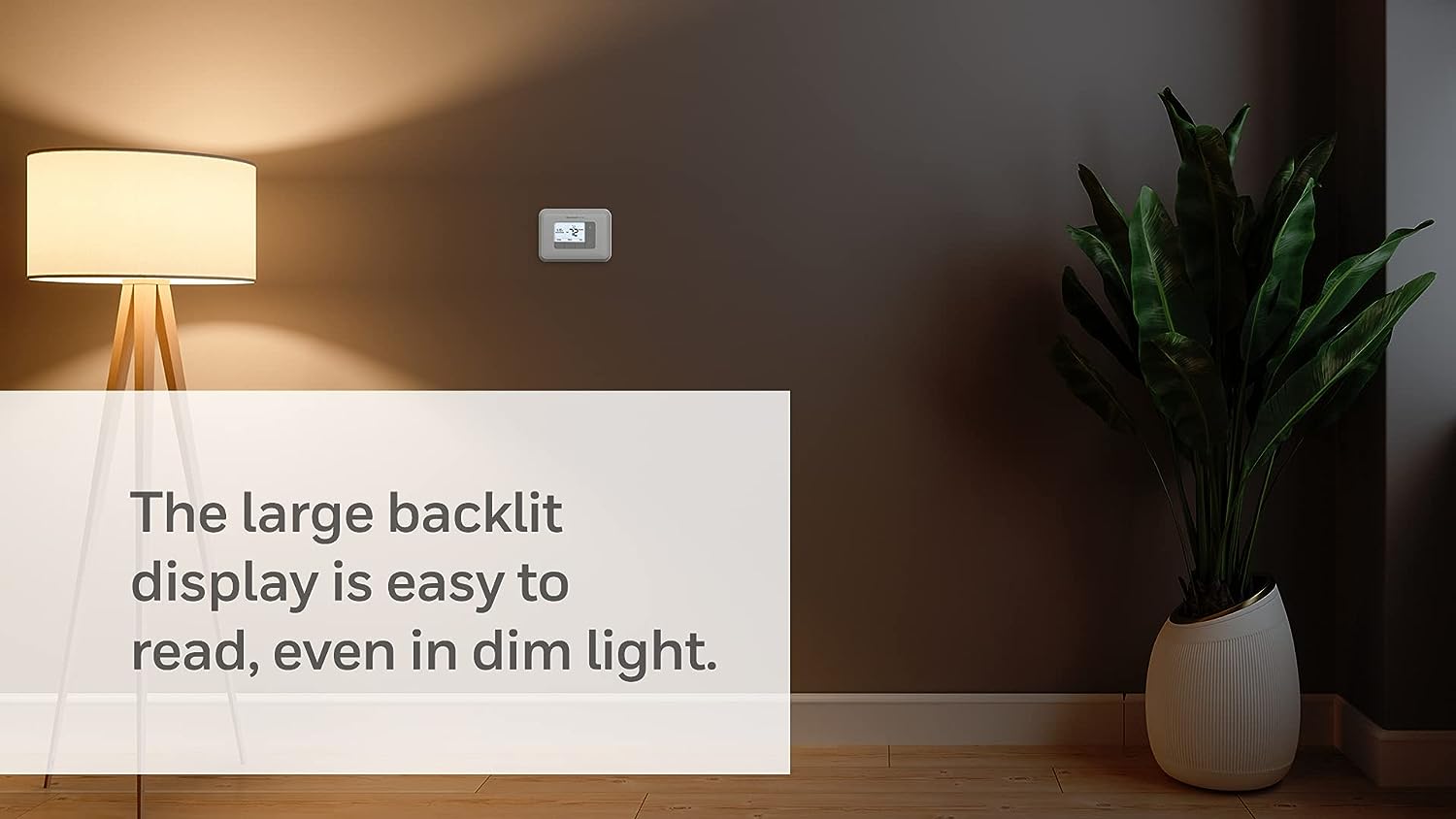 • Backlit LCD display shows current room temperature and set point temperature simultaneously.
