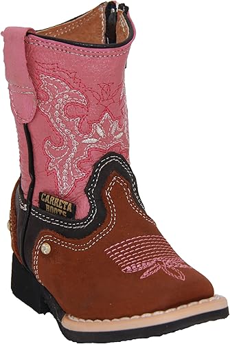 Infant Toddler Girls Western Boots Pink Embroidered Heart Floral Detailed Kids Leather Cowgirl Cowboy Boot