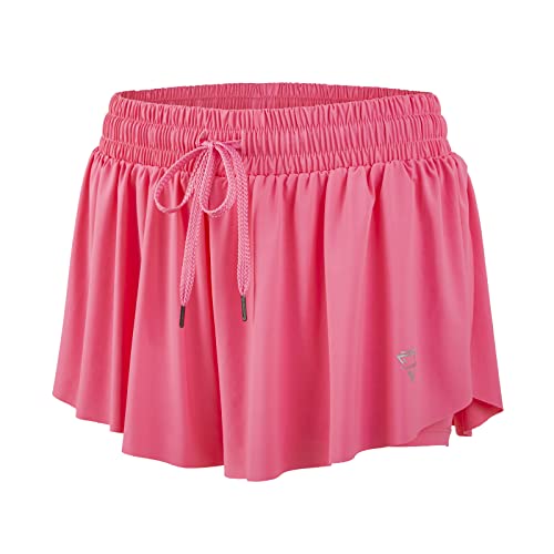 luogongzi 2 in 1 Flowy Hiking Shorts Women Gym Yoga Athletic Running Workout Girls Spandex Cute Clothes Comfy Skort Lounge Sweat Tennis Skirt Preppy Summer(S, Peachy Pink)