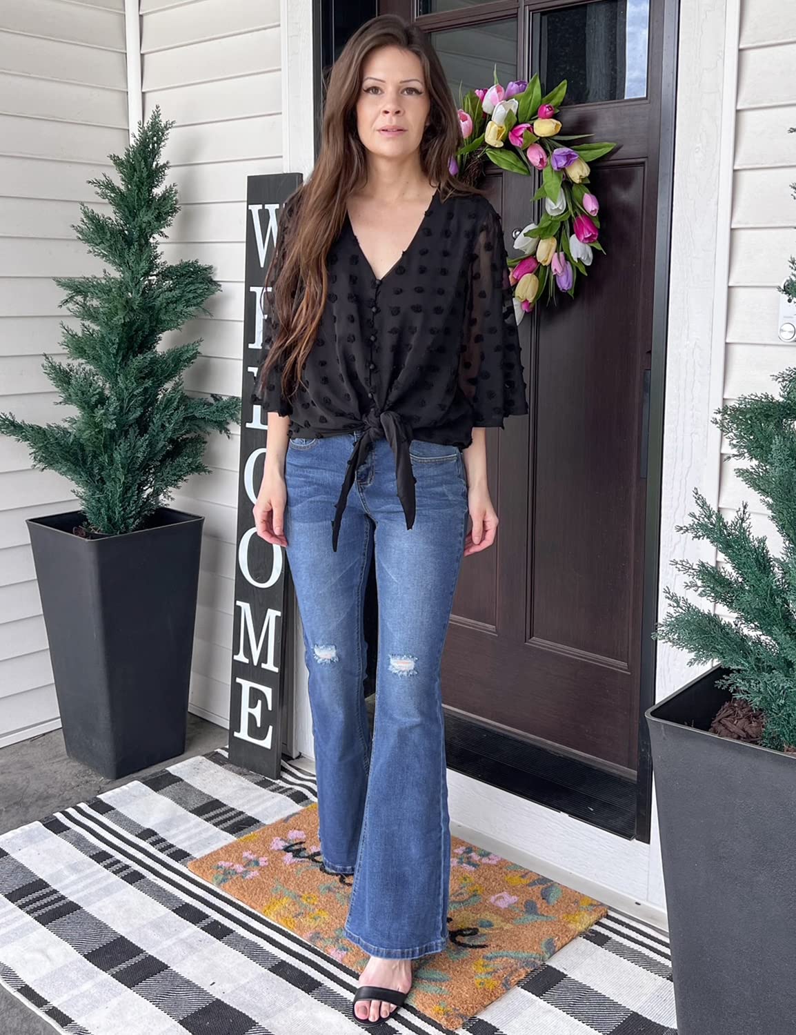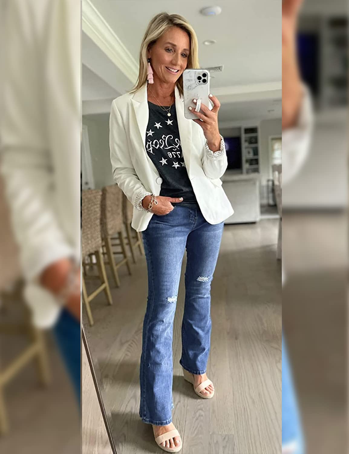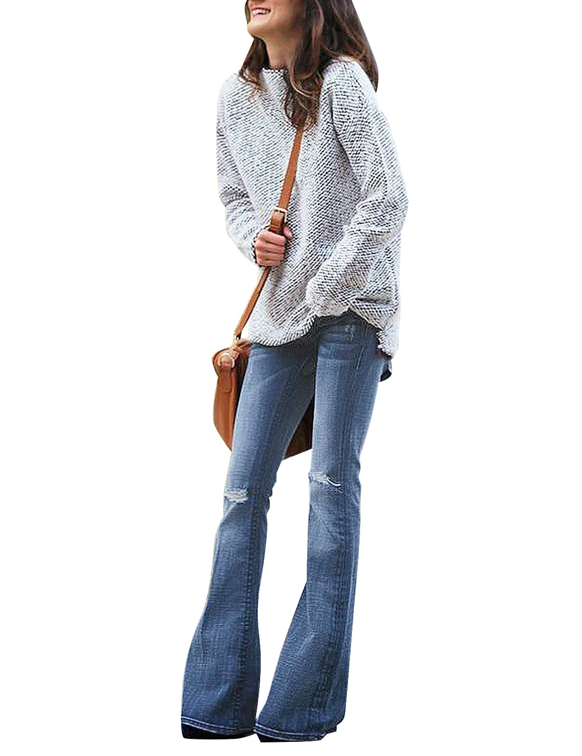 • Discover a pair to add your denim collection. high waisted flare jeans for women is a perfect modern take on retro style. The classic flare denim pants features ripped holes at the knee, fitted thigh and wide, flared leg.