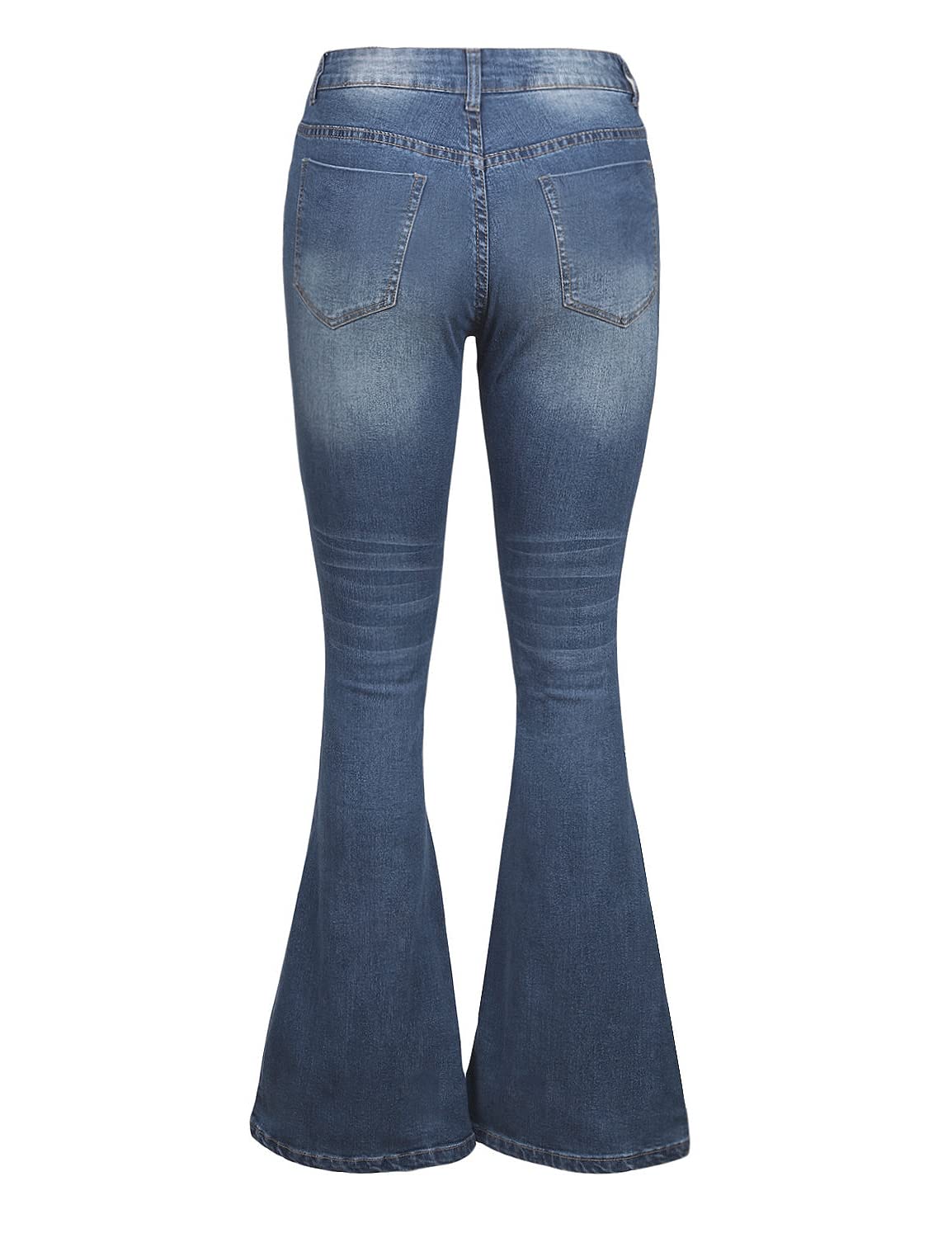 Mid waisted jeans with flared legs. This bells bottom flare pants can show your long legs very well.