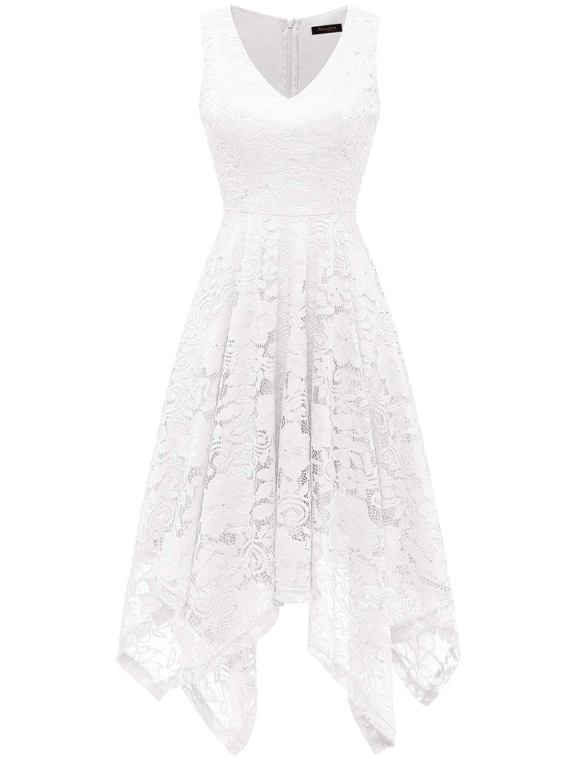 Meetjen Elegant V-Neck Cocktail Dress Formal Irregular Hem Wedding Dresses for Bride Homecoming Dress White M