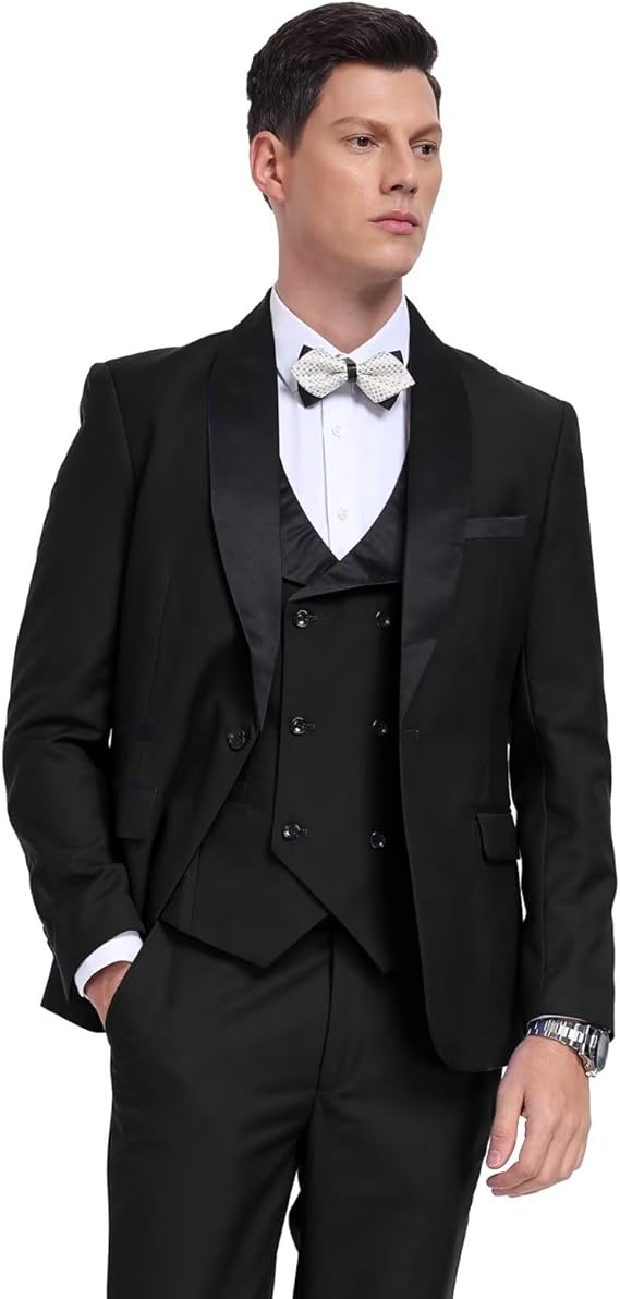 Men's 3 Piece Slim Fit Tuxedo Suit Shawl Lapel Blazer Wedding Prom Party Business Jacket Double Breasted Vest Pants