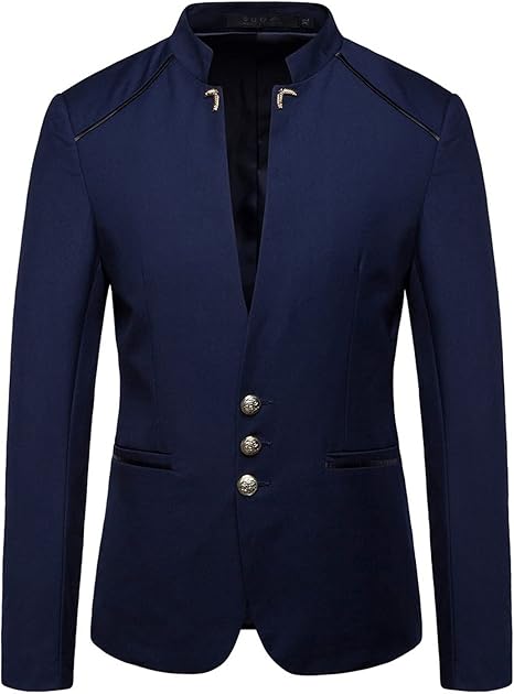 Mens Casual Suit Blazer Jackets Stand Mandarin Collar Lightweight Sport Coats Long Sleeve Button Down Business Coat