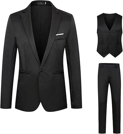 Men's Solid Slim Fit 3 Piece Suit Set One Button Blazer Jacket Vest Dress Pant Set Party Wedding Business Suit Set