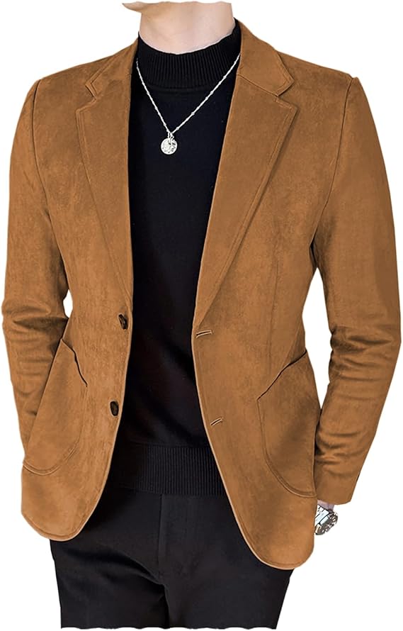 Mens Suede Blazer 2 Buttons Casual Vintage Sport Coat Faux Leather Suit Wedding Party Wedding Party