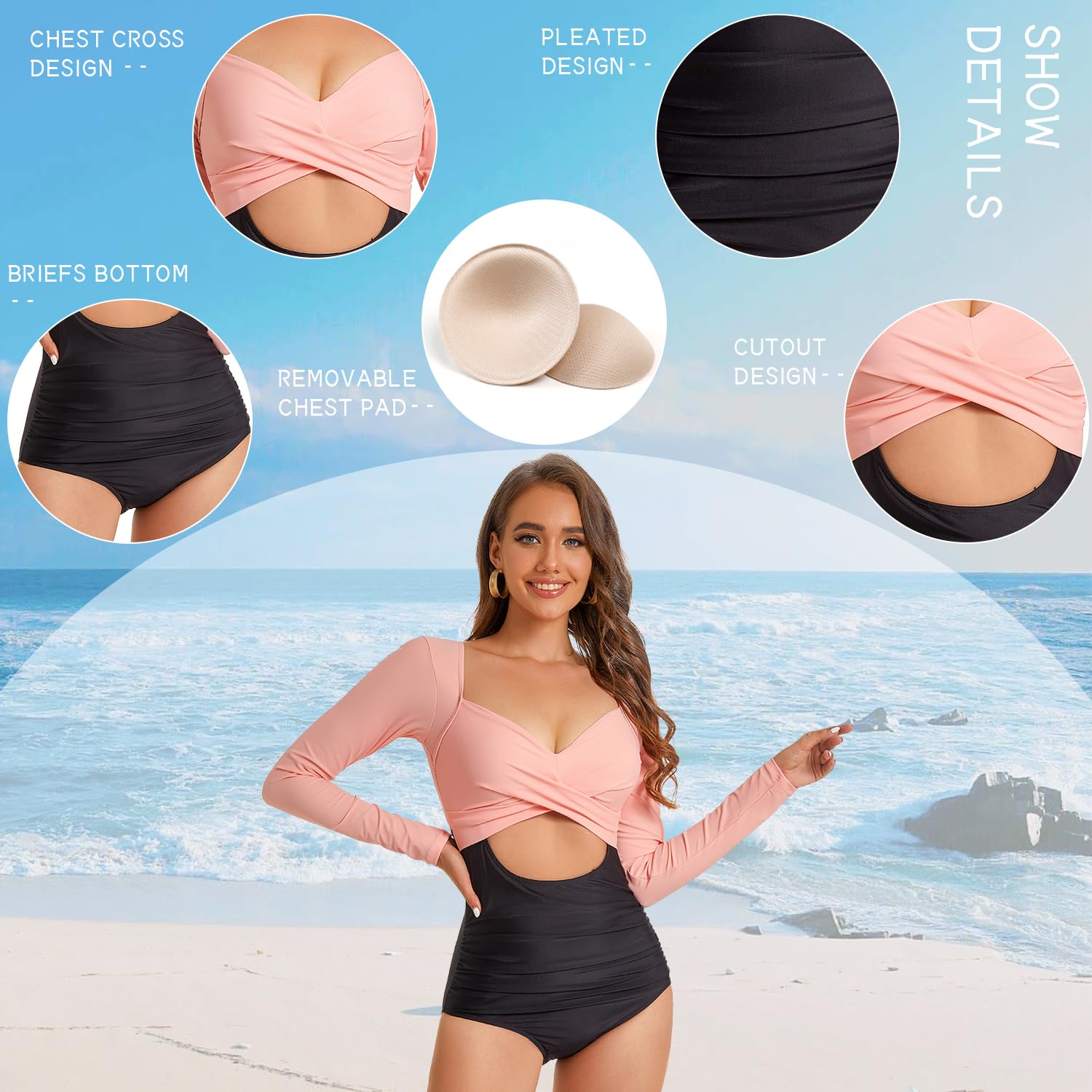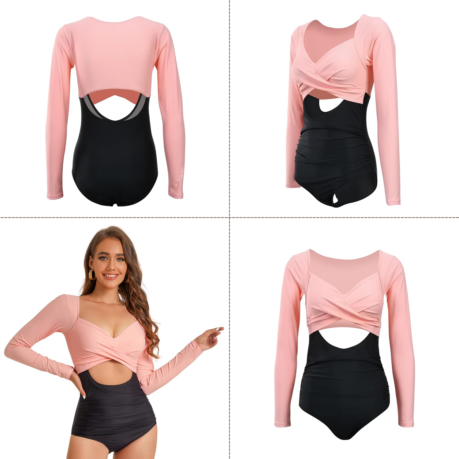 • [👙Excellent rash guard fabric]: This long sleeve swimsuits for women is made of skin friendly soft 4-way stretch material, 82% polyester and 18% spandex material. Features great soft elasticity, tailored for a comfortable, breathable, quick drying, and not easily deformed, durable for long time.