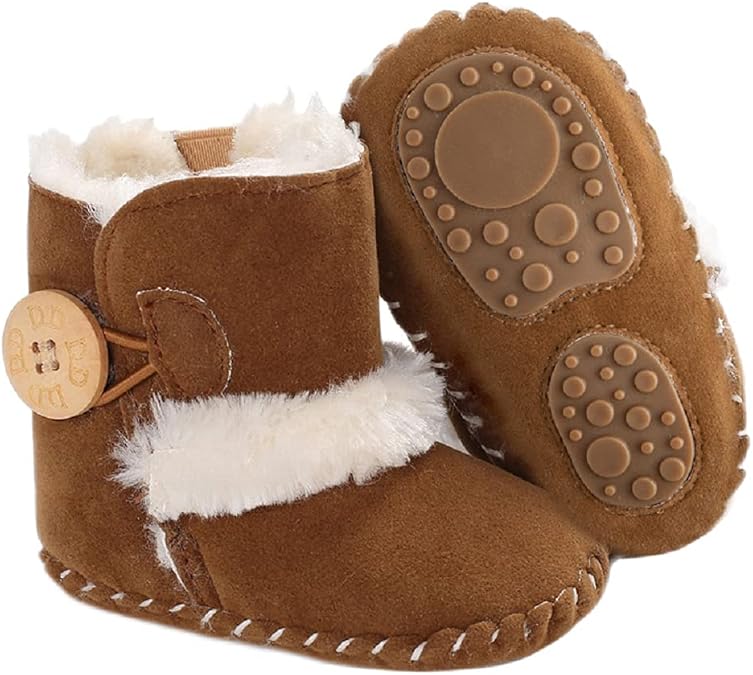 Newborn Baby Boys Girls Fleece Fur Knit Winter Warm Snow Boots Soft Sole Prewalker Non-Skid Boots For Infant Toddler(12-18 Months, Brown)