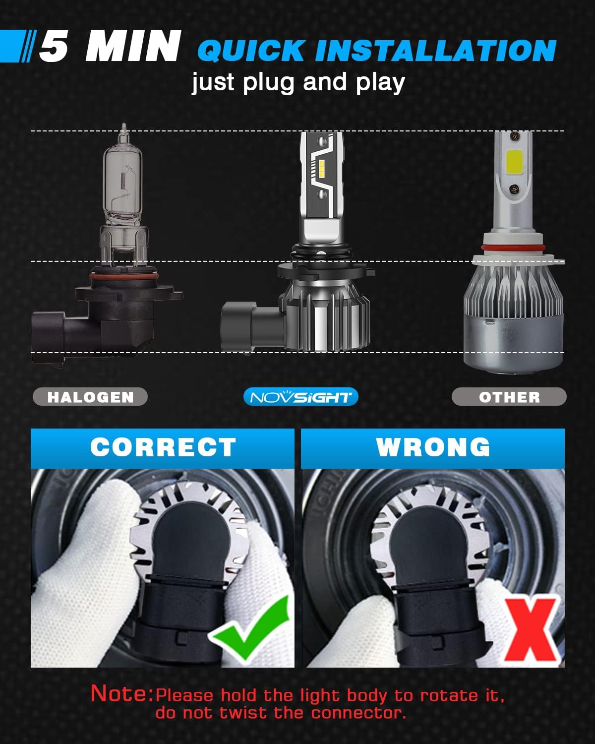 • 【Safe Driving & Convenient】 Enjoy traveling with family and friends, NOVSIGHT led headlights play a convenient and safe roles. Perfectly focused pattern beam and not dark spot, without dazzling other drivers, suitable for any bad weathers, better vision in rainy and foggy days.