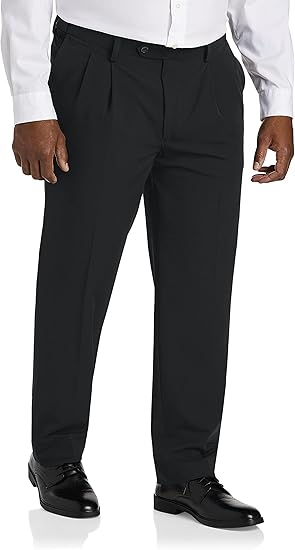 Oak Hill by DXL Men's Big and Tall Easy Stretch Pleated Dress Pants Black 62 x 32