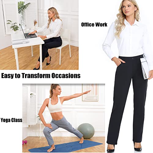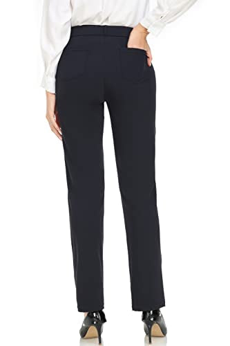 Oalka Women's Dress Pants Straight Leg Yoga Work Stretchy Pant for Office Business