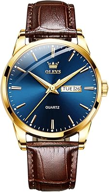 OLEVS Mens Watches Leather Wristwatch with Waterproof Luminous Analog Quartz Fashion Business Sport Watches for Men
