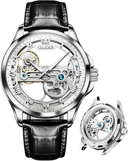 OLEVS Skeleton Tourbillon Leatehr Watches for Men Luxury Dress Automatic Self Winding Mechanical Waterproof Stainless Steel Luminous Men's Wrist Watches Gift