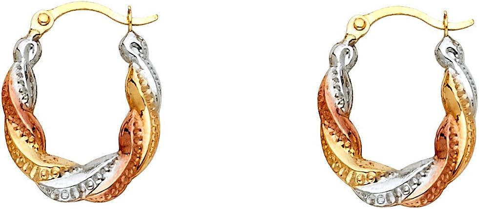 Oval Twisted Hoop Earrings 14k Yellow White Rose Gold Hollow Diamond Cut Tri Color 17 x 14 mm