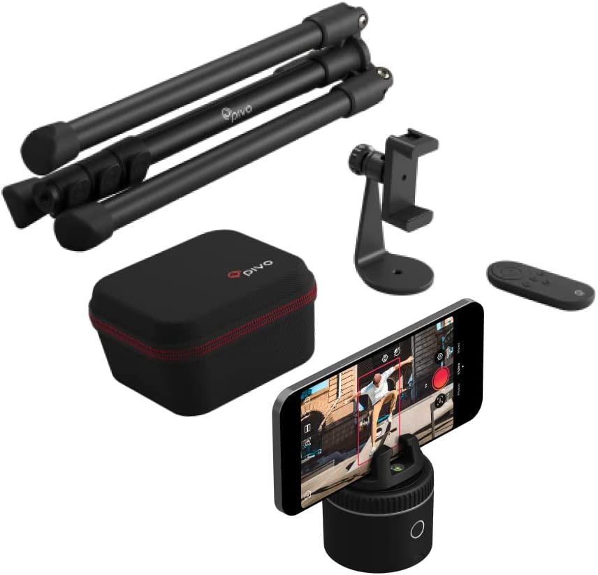 Pivo Pod Auto Face Tracking Phone Holder, 360° Rotation, 6 Speed, Content Creator Essentials for Horse Riders, Live Streaming, Vlog with Remote Control, Smart Mount, Travel Case, and Tripod
