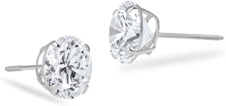 Real 14K Gold Round Clear CZ Stud Screw Back Earrings | 0.030-4.00 CTW | Yellow, Rose & White Gold