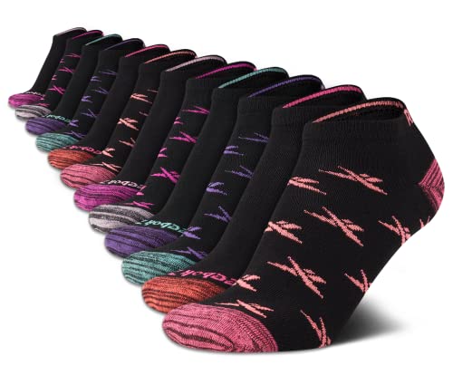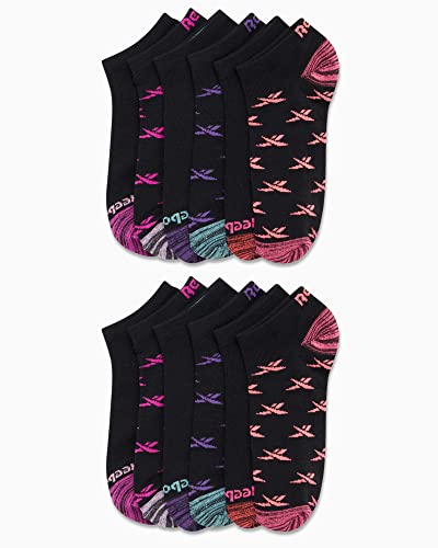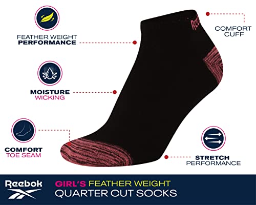 Reebok Girls’ Lightweight Comfort Athletic Low Cut Socks (12 Pack), Size Small, Black Logo