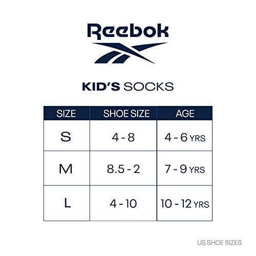 Details: Reebok Girls' Quarter Cut Basic Socks are going to give your child the perfect level of performance they expect from an athletic sock. Whether on the court, in the gym, or on the track, these socks were designed for playing hard. The great fit hugs the foot and stays in place while offering superior cushioning so your little one can go the distance. Features authentic Reebok logo. Quality Materials are well made and last though wash after wash. These socks get better with each wear and will give your girl room to grow. Reinforced Heel and Toe You expect socks to last a long time, Reebok offers reinforced heels and toes to extend the life of her socks to prevent holes caused from rubbing in shoes and daily wear and tear. Cushion Comfort - Muscle fatigue is significantly reduced with extra soft padded feel. When your child needs to perform these socks will go the distance. Moisture Control Heat and sweat can cause blisters which slow your kid down. Reebok socks are breathable and offer superior moisture absorption to keep their feet cool and dry when the weather heats up. Athletic Performance - Your child will love the smooth feel and won't have to worry about bunching or twisting when she's playing hard. Easy Care Simply machine wash and tumble dry; Please Reference the Variations for All Available Sizes & Colors.