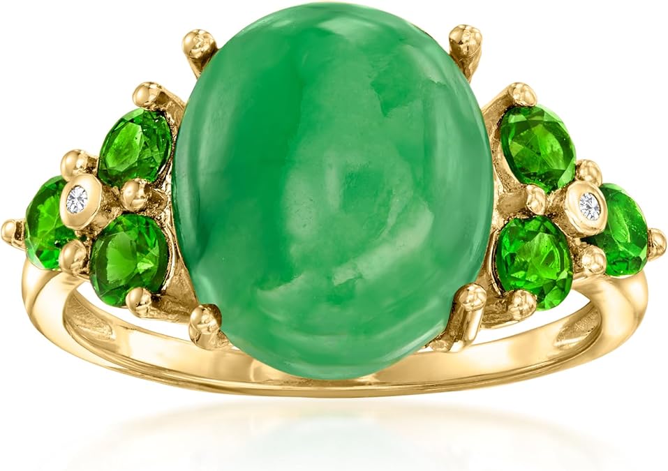 Ross-Simons Jade and .70 ct. t.w. Chrome Diopside Ring With White Zircon Accents in 18kt Yellow Gold Over Sterling Silver