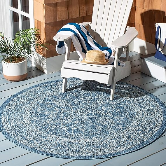 SAFAVIEH Courtyard Collection 4' Round Navy/Ivory CY8680 Indoor/ Outdoor Waterproof Easy Cleaning Patio Backyard Mudroom Area Rug