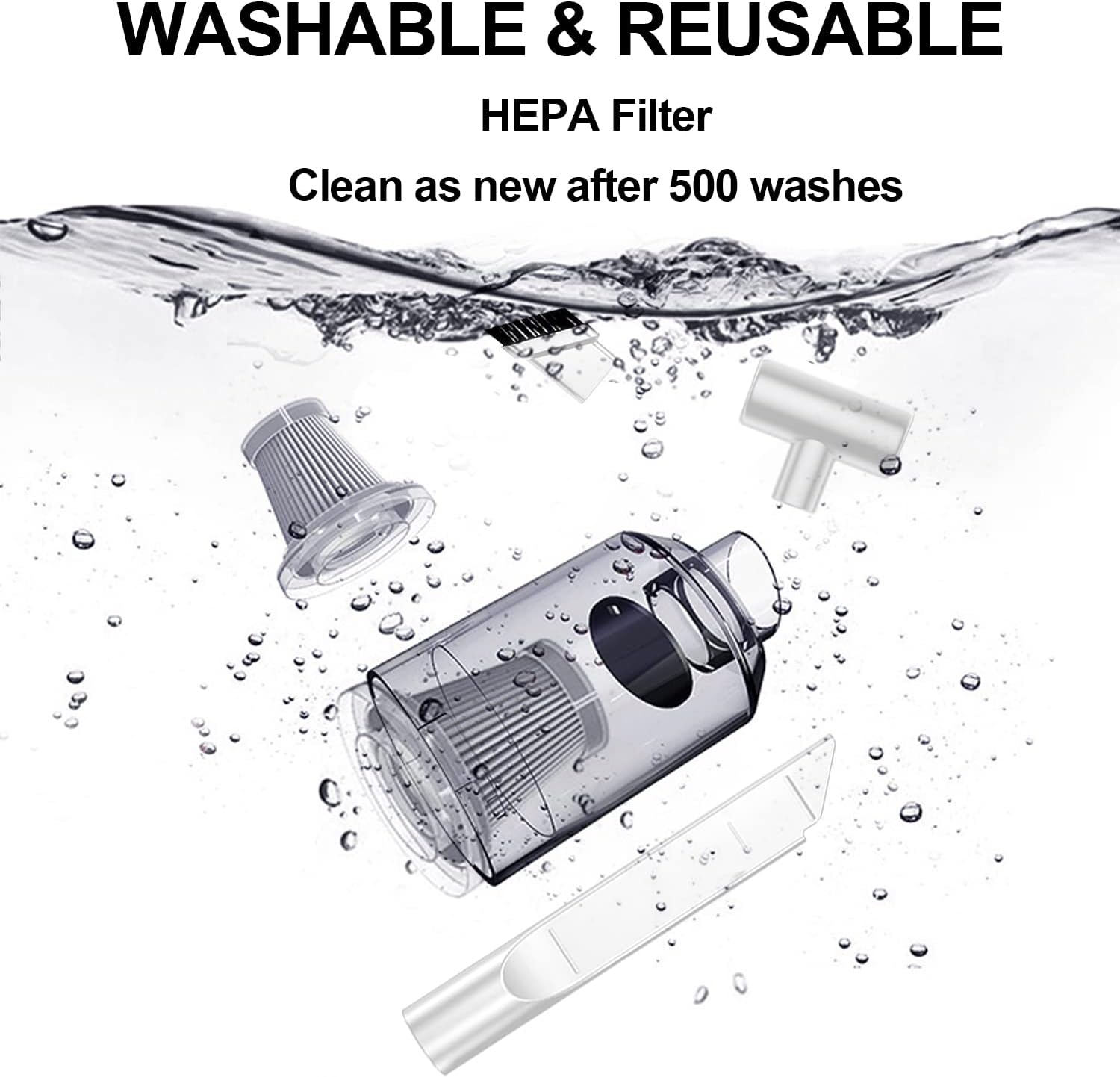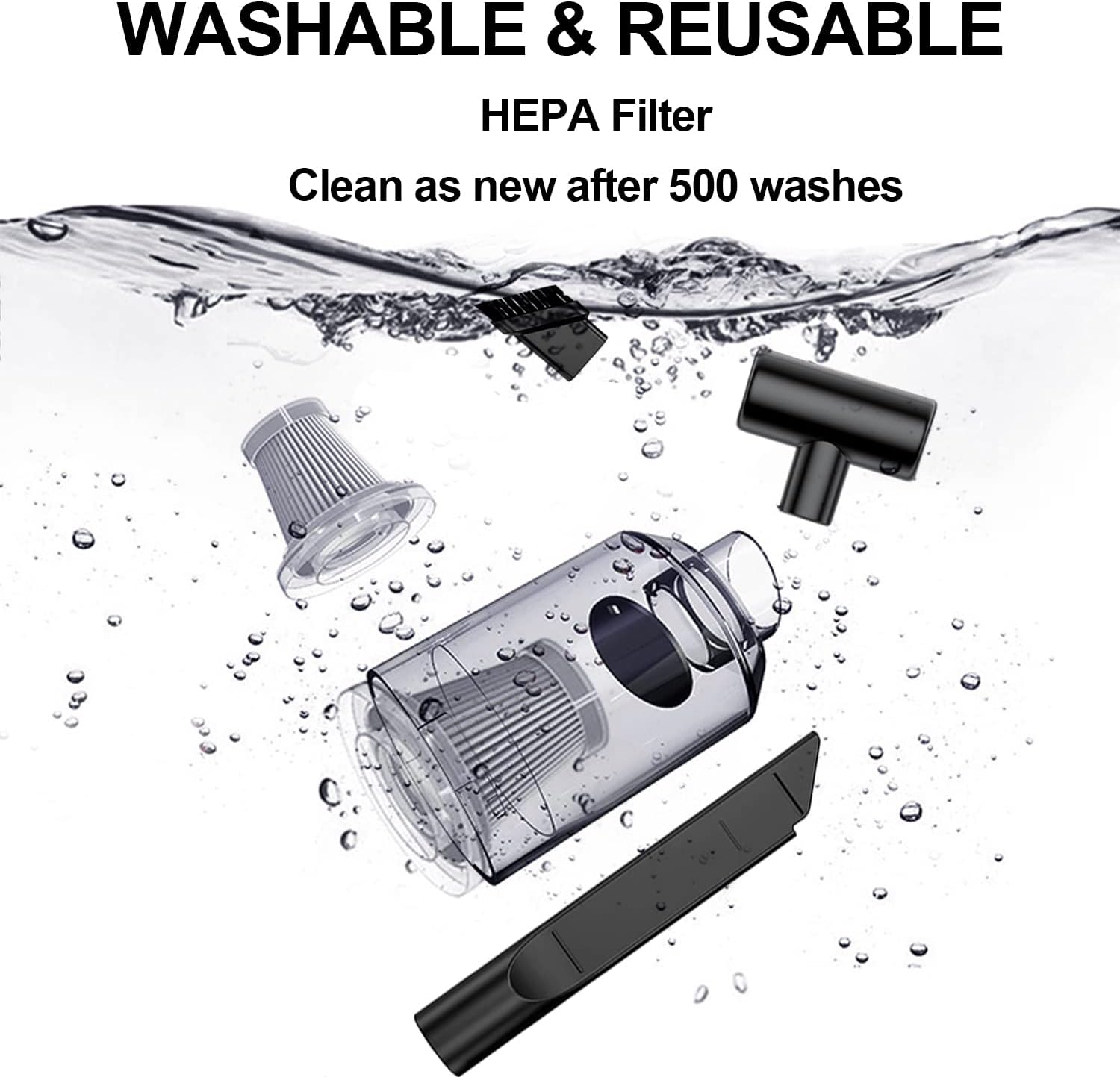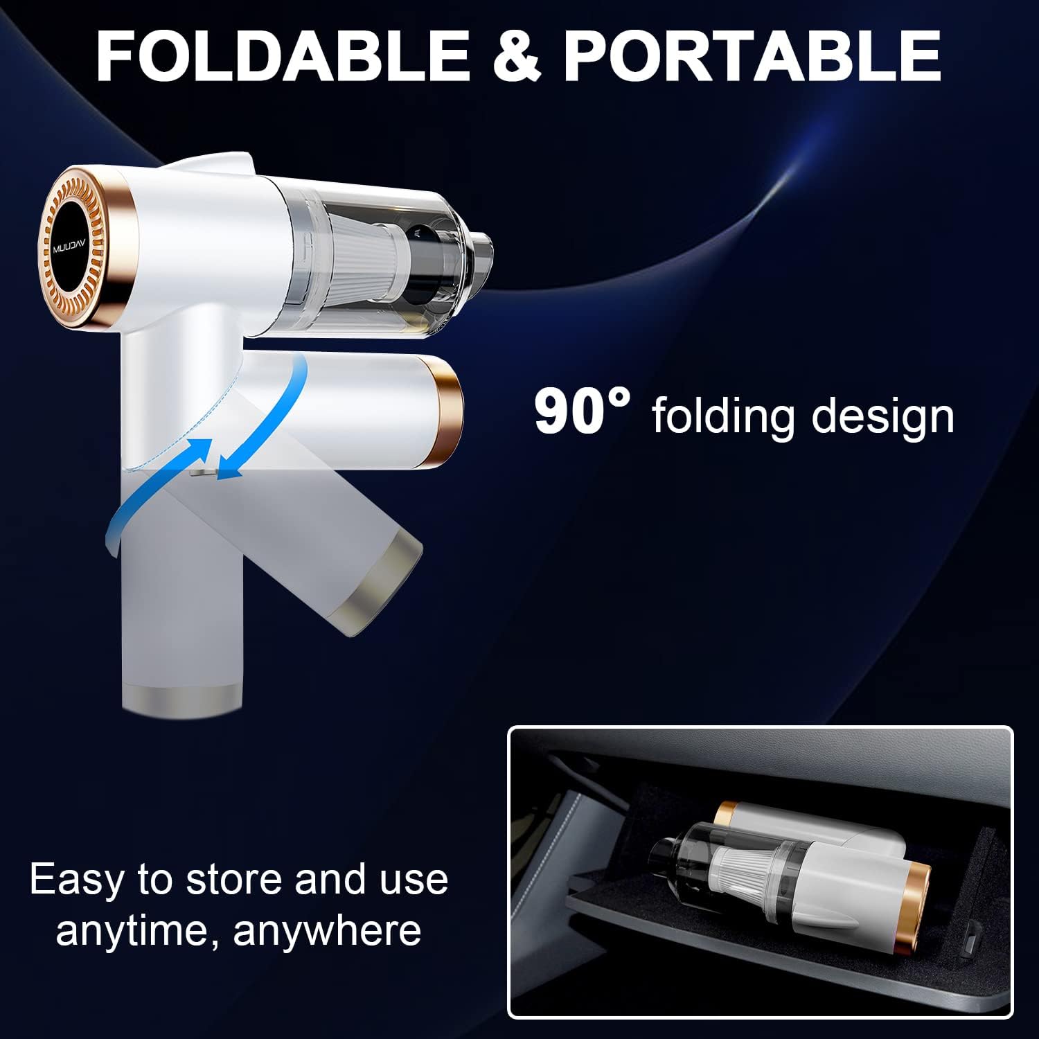 • Foldable and Portable: The handheld vacuum cleaner is 90° foldable and weight only 0.76 pounds. It is compact enough to be placed randomly in the interior space of the car and a simple one-hand operation to quickly clean your car and home.