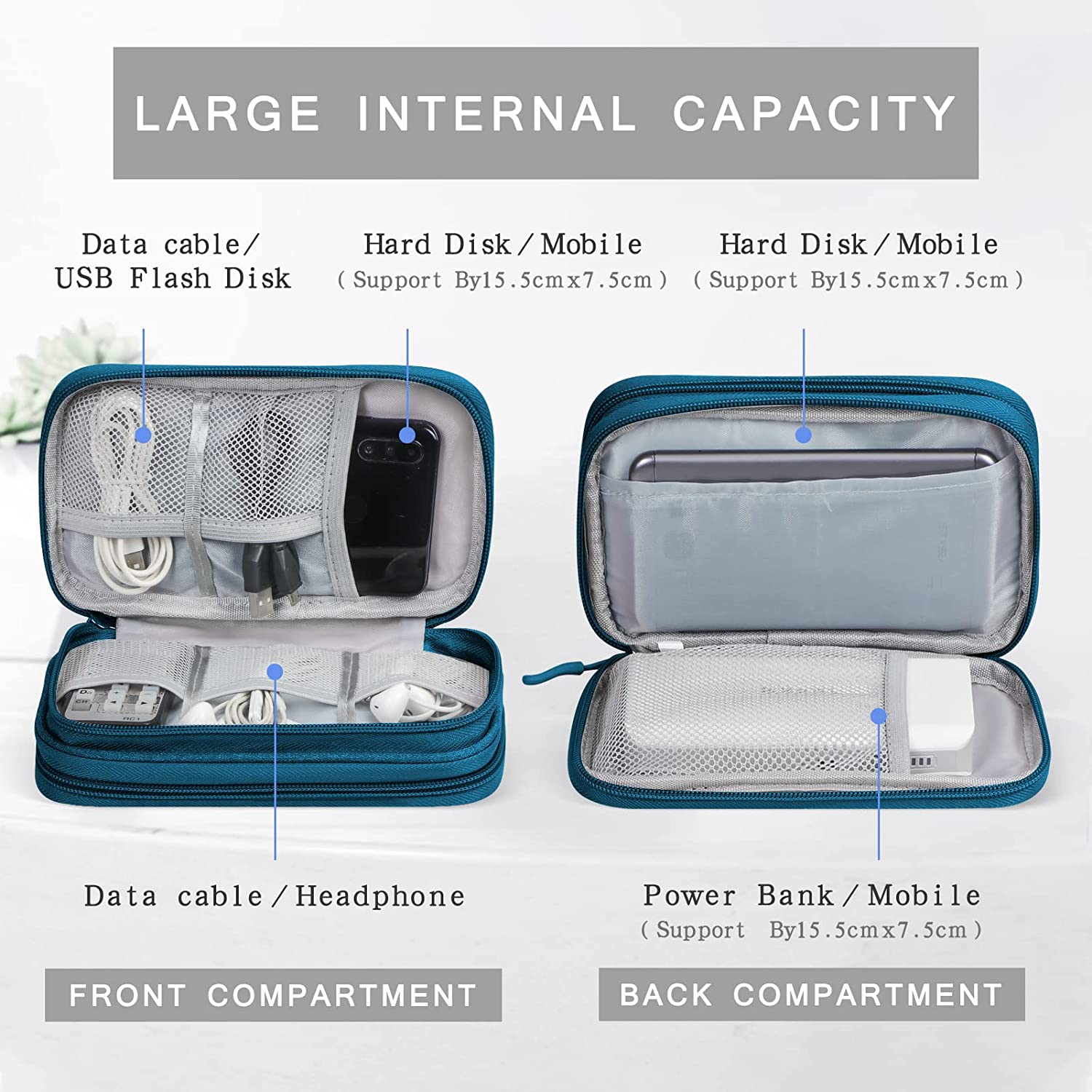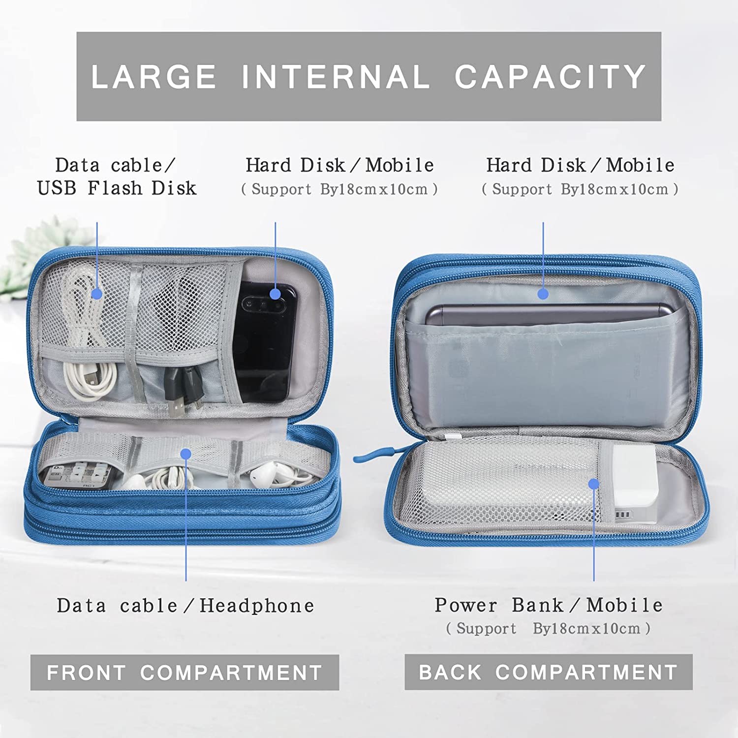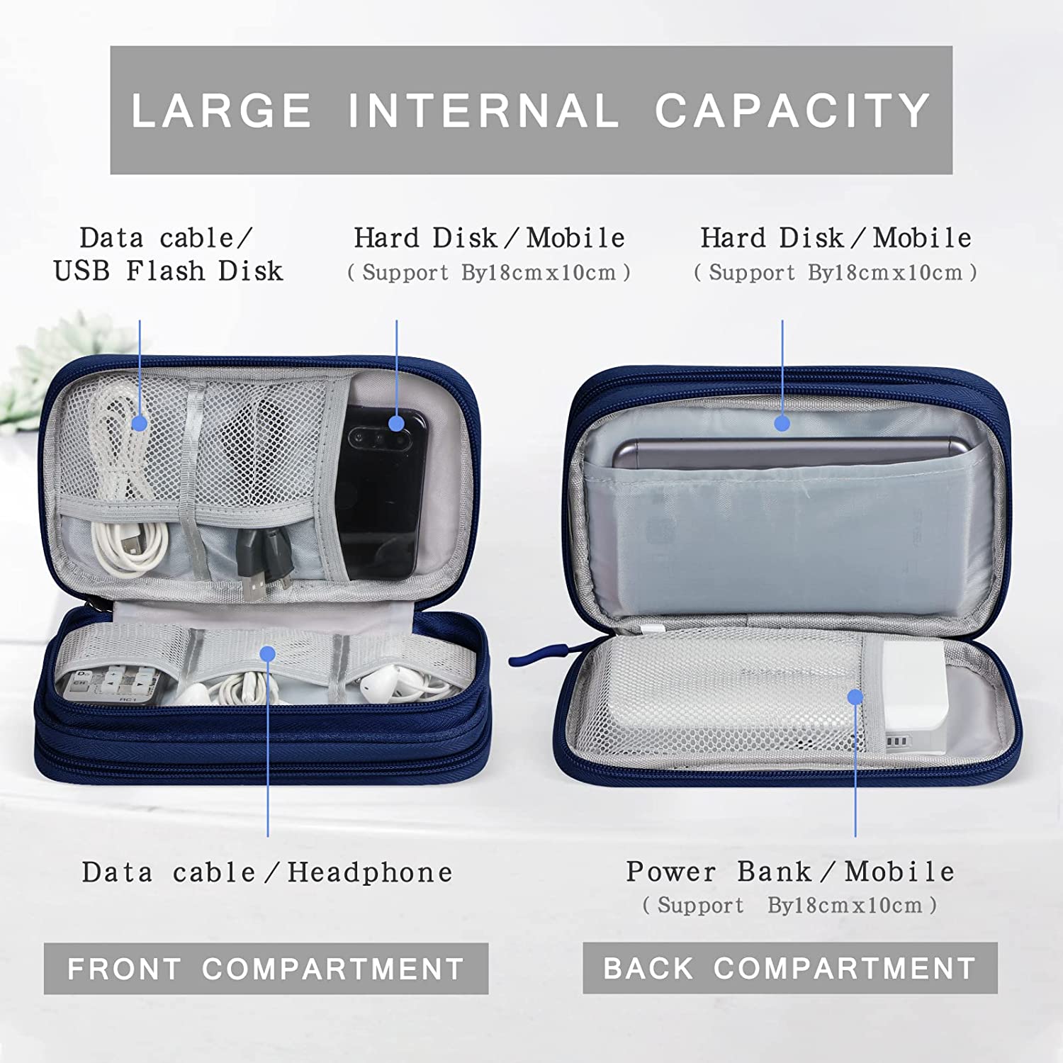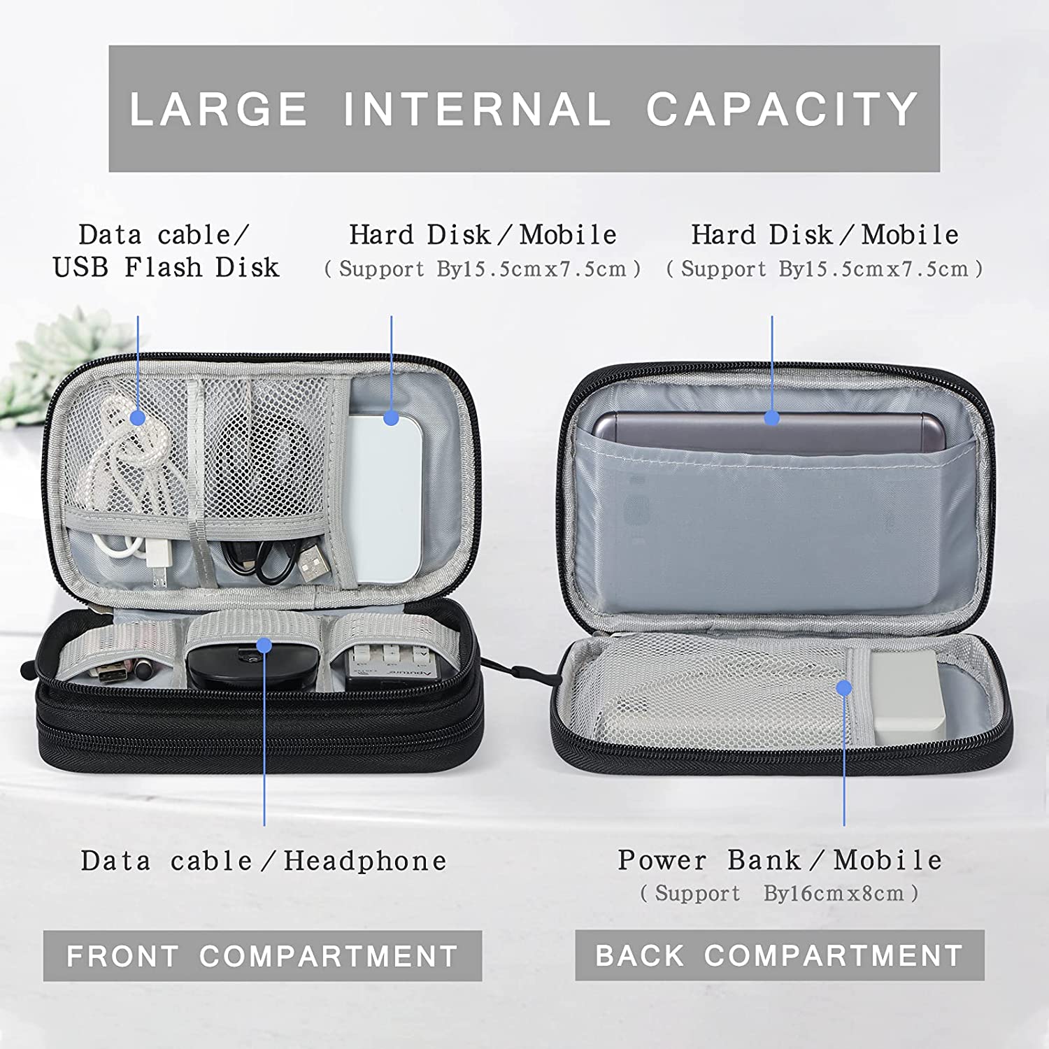 • 3.[Large Capacity]3.The case bag comes with 2 compartments, designed to store electronic gadgets, such as power bank, external hard drive, SD memory card, cables, earphone, connector adapter, also good for kids/students stationeries, like pen, pencil, & eraser.