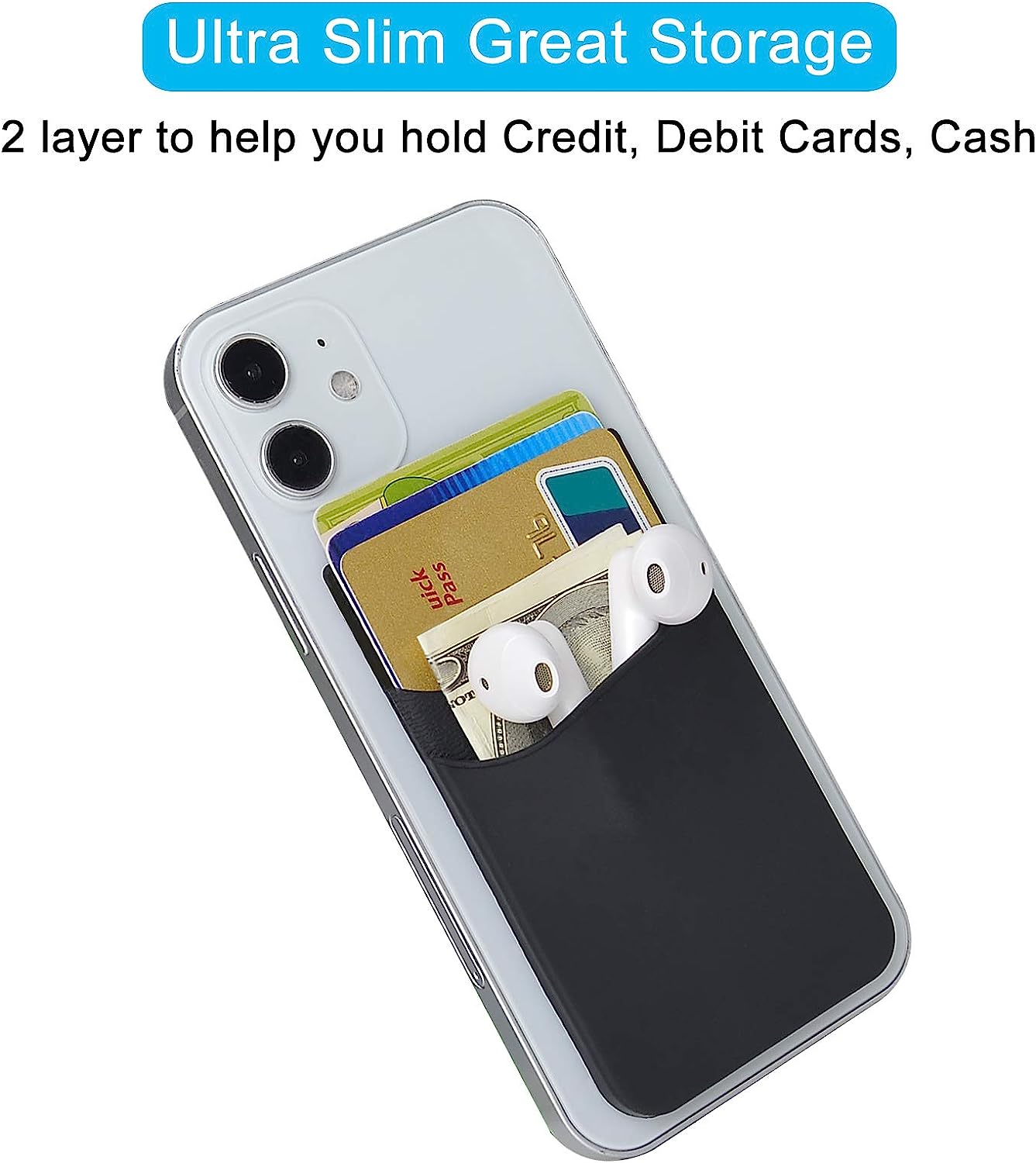 • 【Easy Use, Easy Carry】Just peel off the cover of the phone wallet, stick on back of phone, and finish by softly pressing. With it you can carry only one phone out of door but with your card, cash, ear phone all your needs.