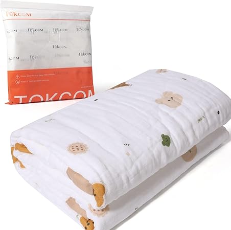 Swaddle Blankets, 6-Layer Gauze Receiving Blanket, Unisex Swaddle Wrap, Muslin Burping Clothes, Essentials Infant Shower Items (Bear)
