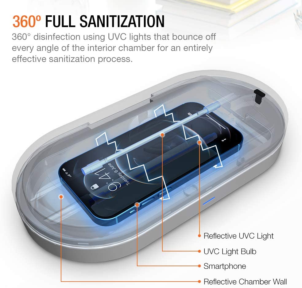 • 2X Powerful Light - 2 powerful UV light bulbs to effectively and efficiently sanitize smartphones in all angle.