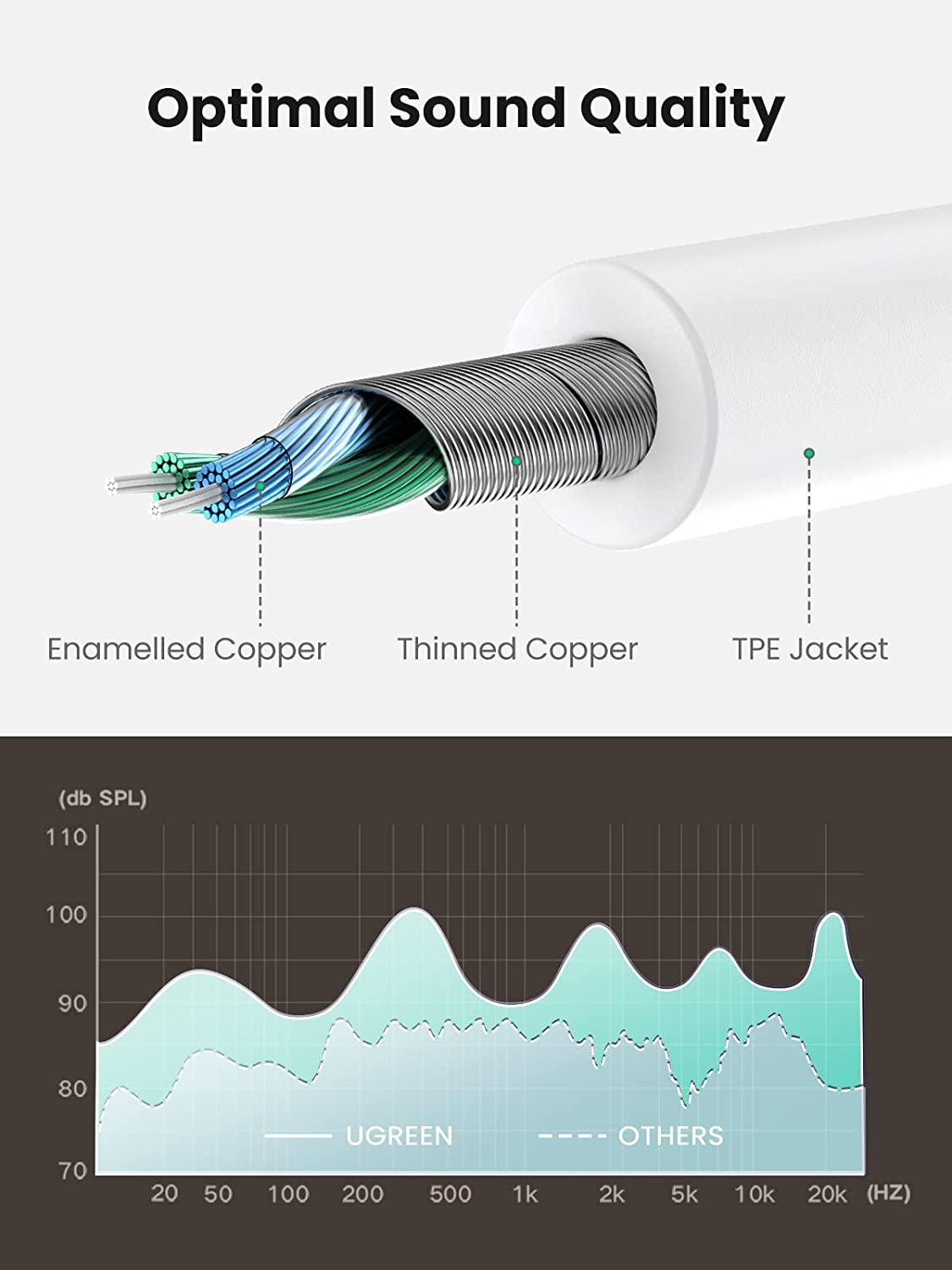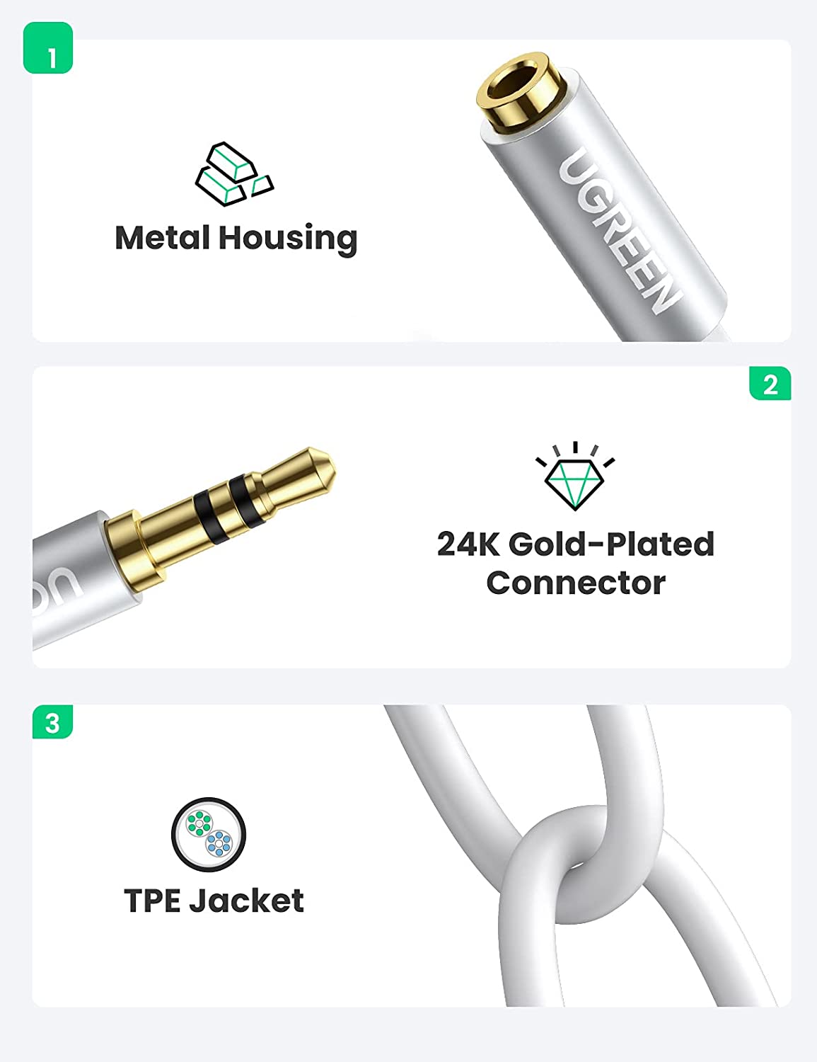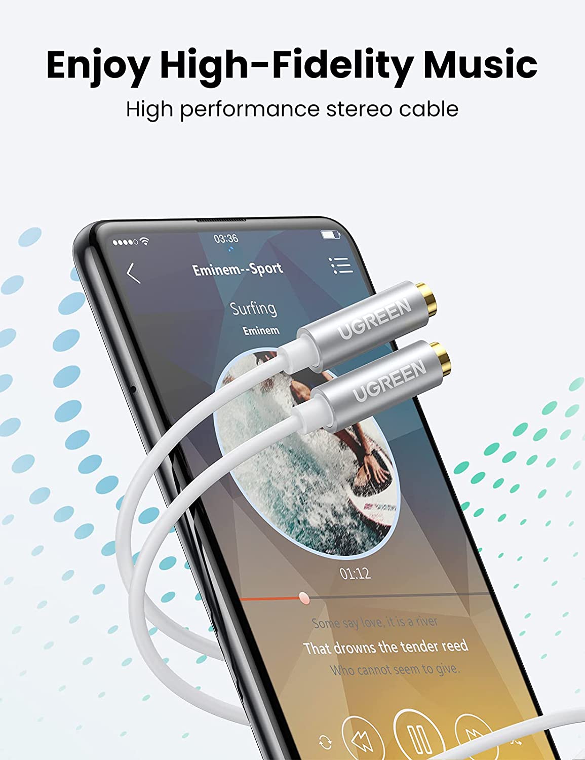 • Everlasting Durability: UGREEN 3.5mm Y Splitter Cable is built to last forever. Aluminum alloy casing and gold-plated plugs significantly enhance the durability for a longer lifespan. The strain-relief rings of the connector make the headphone jack splitter more stable and flexible. Manufactured by evolved TPE outer, the Aux splitter passes bend tests and is strong enough to withstand any twist, tug, and tangle