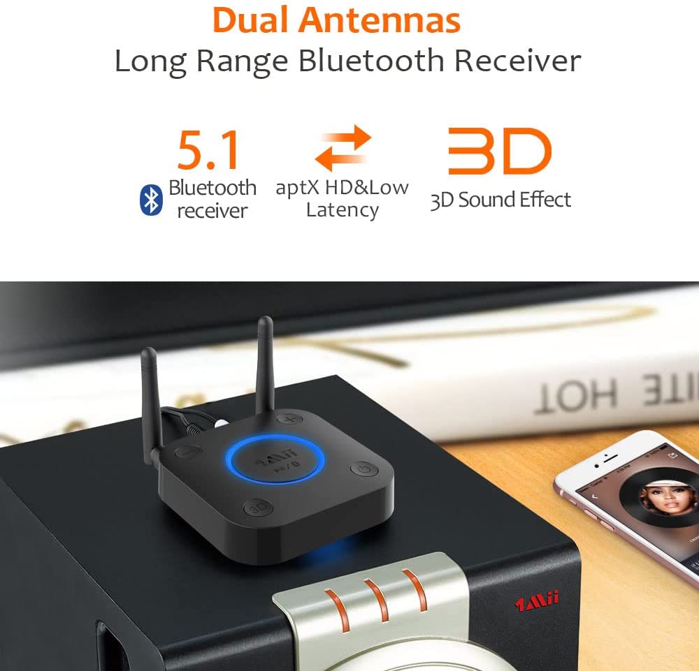 • Aptx Low Latency&3D Audio: 1Mii B06 Pro Bluetooth Receiver For Home Stereo Features Qcc3005 Bluetooth 5. 0 Chip To Ensure High Fidelity Bluetooth Audio Signal For Music Streaming To Speakers Or Home Stereo Systems That Doesn’T Have The Capability. This Bluetooth Adapter Also Supports Apt-X And Apt-X Low Latency (Apt-X-Ll). And The 3D Audio Can Be Switched On Or Off By Pressing The “3D” Button On The Bluetooth Audio Receiver. The Green Led Will Be On When Switched To 3D Audio.