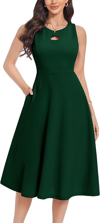 Wedtrend Women's 1940s Vintage Dress with Pockets, Midi A-line Cocktail Dress, Cutout Church Dresses