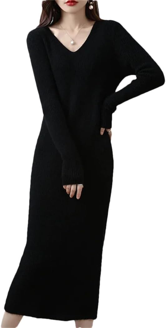 Women Autumn Winter Wool Thicken Sweater Dress Warm Basic Knit Pullovers Slim Dress
