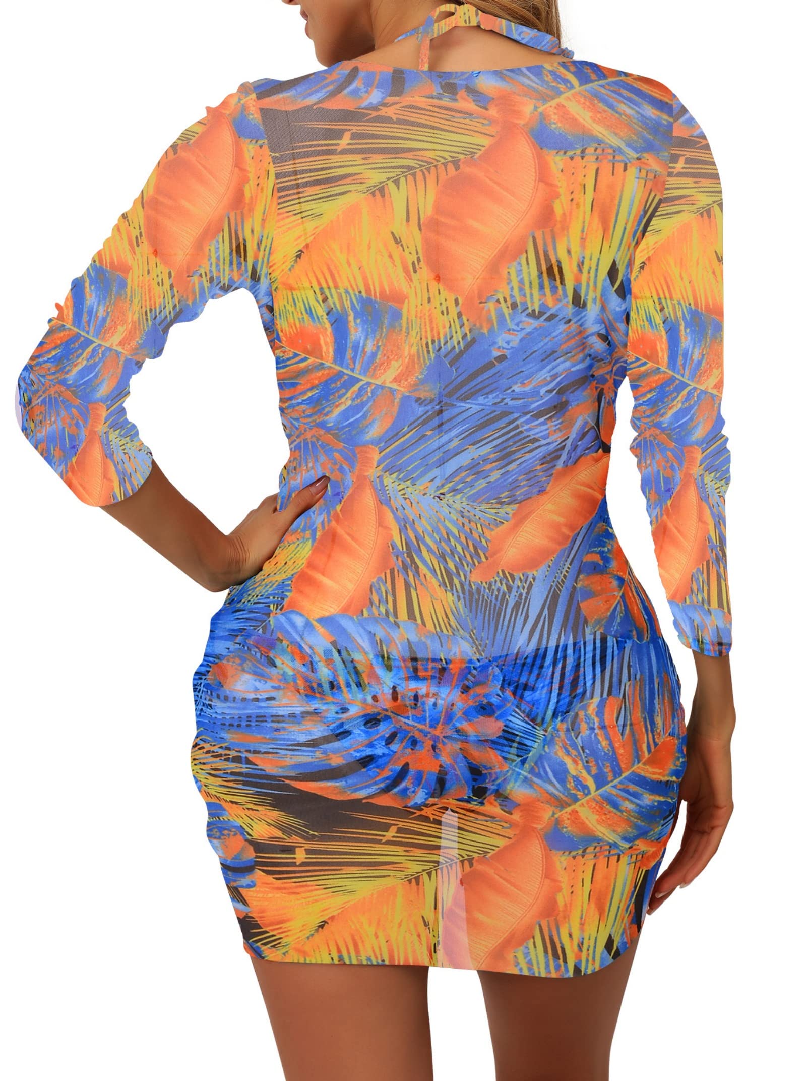 Womens 3 Pieces Bikini Sets Triangle Halter Swimsuits Thong Bottoms with Mesh Swim Cover Up Dress Tie Dye Bathing Suits Blue Yellow XL