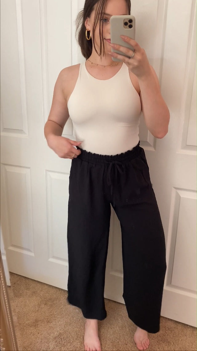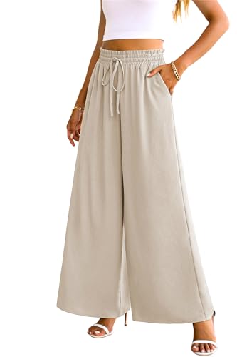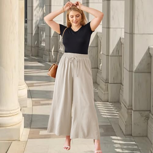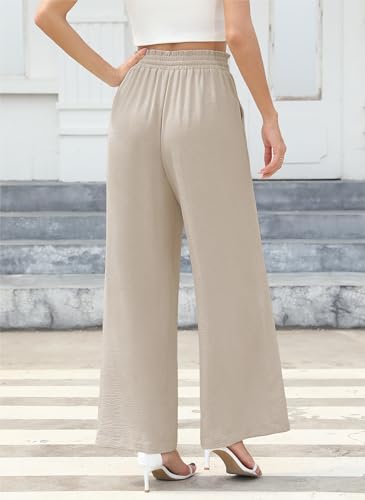 Women's Wide Leg Linen Pants High Waisted Flowy Palazzo Pants Lounge Loose Casual Work Pants Trousers Pockets