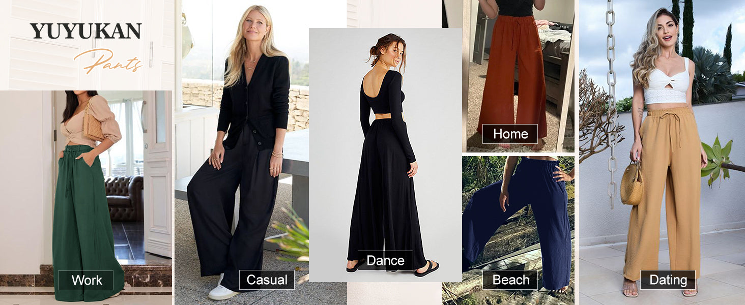 • Material: Made from super soft,comfy,lightweight,and breathable fabric that's gentle on your skin. Not stretch, not see-through and won't wrinkle easily or shrink after washing. Enjoy all-day comfort in these loose, flowy wide leg trousers.