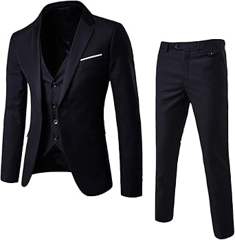 WULFUL Men_Ê_s Slim Fit Suit One Button 3-Piece Blazer Dress Business Wedding Party Jacket Vest & Pant