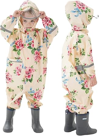 Unisex Toddler baby Boys Girls Waterproof Rain Suit Sets Kids One Piece Rain Coat Coverall Hooded Jumpsuit 1-10 T