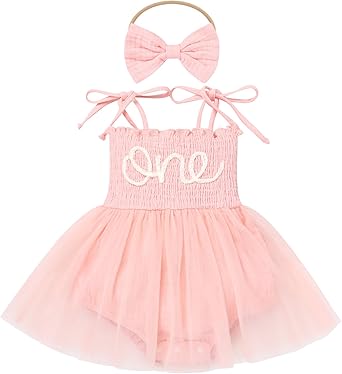 AWIBMK Baby Girls 1st Birthday Outfit Spaghetti Straps Romper Dress with Headband Sleeveless Princess Cake Smash Clothes