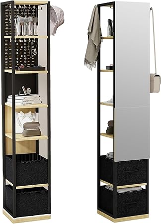 ARTETHYS Mirror with Storage Jewelry Armoire Cabinet Standing with Drawers 360ÎçSwivel Full Length Black Standing Floor Mirrors with Shelves for Bedroom