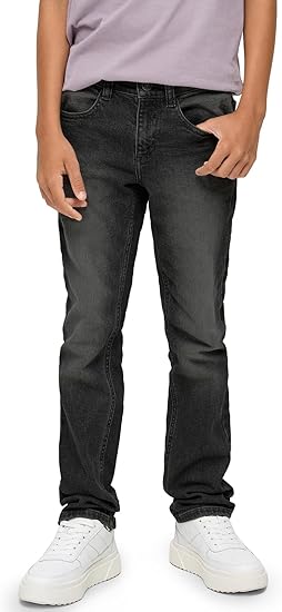 Haloumoning Boys Casual Demin Pants Kids Elastic Waist Straight Fit Jeans with Pockets 5-14 Years