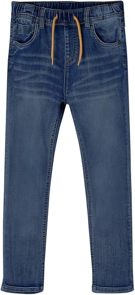 Haloumoning Boys Jeans Kids Elastic Waist Straight Leg Denim Pants with Drawstring 4-14 Years