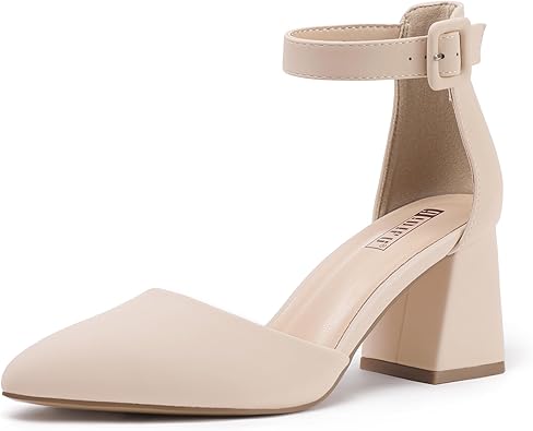 IDIFU IN3 Women's Pumps Closed Toe Heels Chunky Block Low Heels Dress Shoes for Women Wedding Prom Bridal Bridesmaid Office Formal Pumps Shoes Comfortable Pointed Toe Ankle Strap Small Short Heels