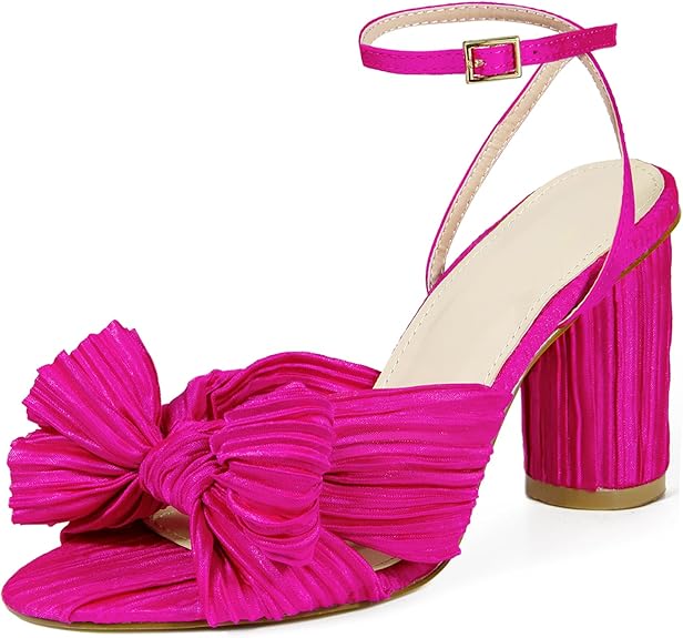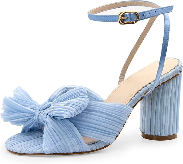 MUCCCUTE Women's Bow Knot Heeled Sandals Ankle Buckle Strap Chunky Heeled Open-toe Comfortable Wedding Party Fashion Heeled