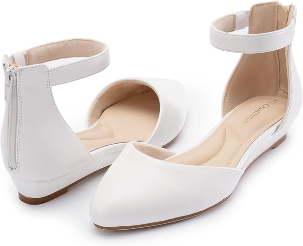 Women Flat Shoes with Ankle Strap, Low Wedge Heel Flats for Women, Comfortable Pointed Toe Dress Shoes for Work Business Wedding