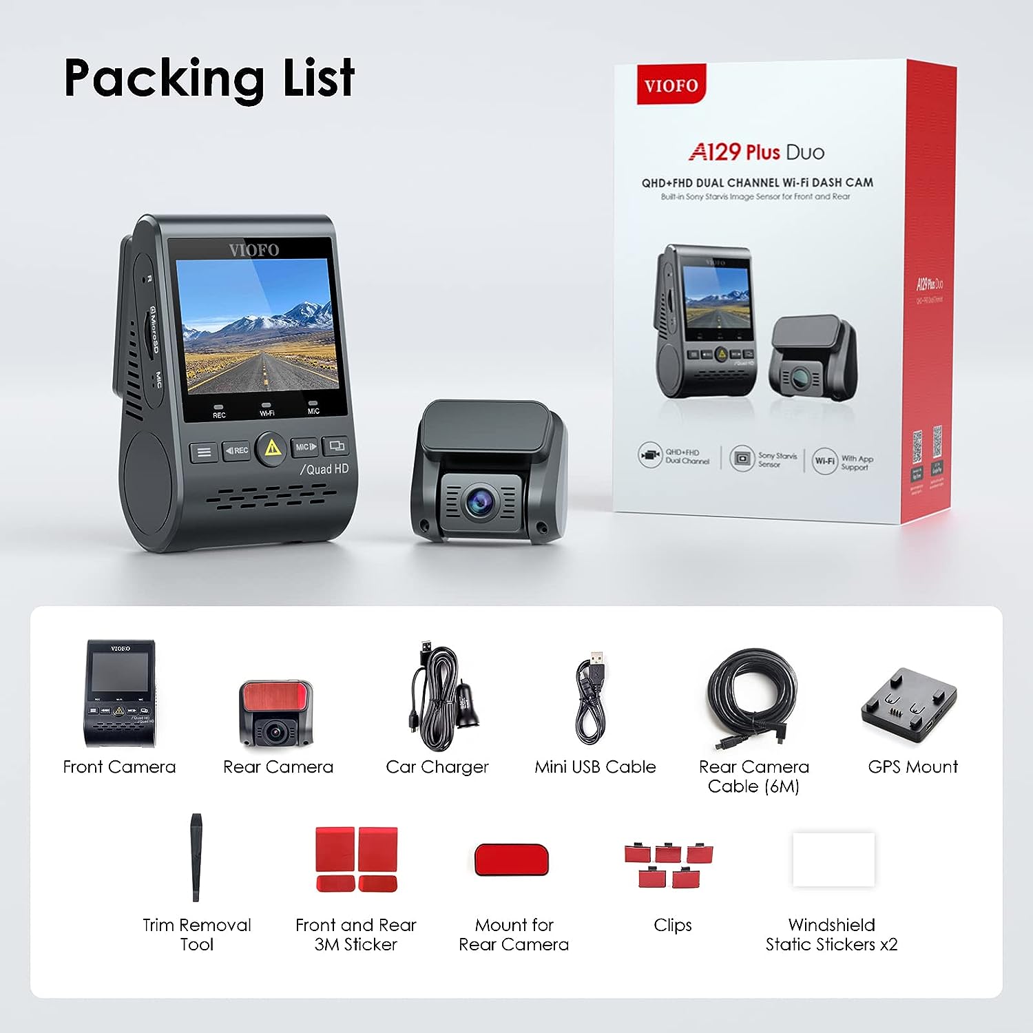 VIOFO Dash Cam Front and Rear 2K 1440P 60fps +1080P 30fps Dual Dash Camera with Wi-Fi GPS, Emergency Recording, Motion Detection, 24h Parking Mode, Super Capacitor (A129 Plus Duo)