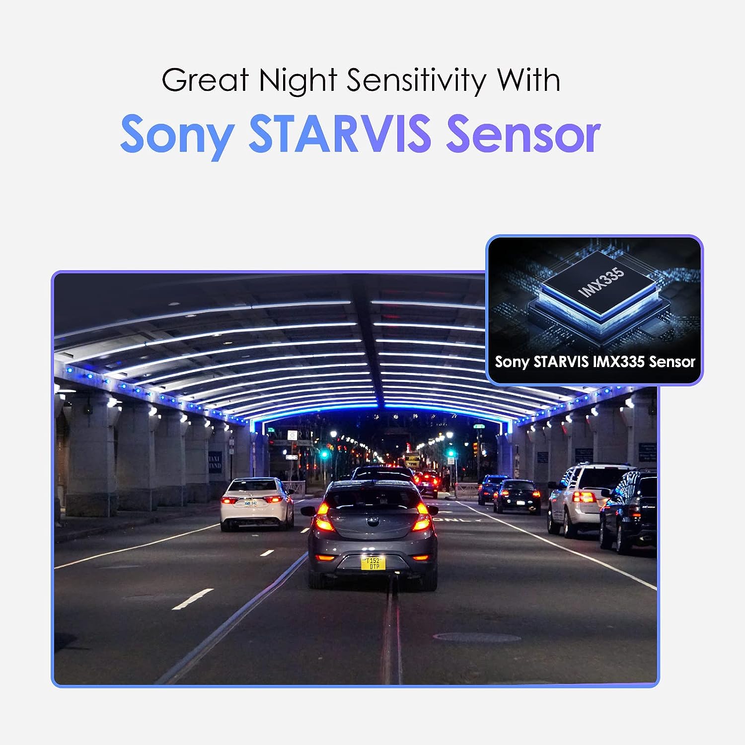 • 【HDR & Super Night Vision】Both front and rear cameras are loaded with super high quality Sony Sensors, providing a much clearer image than most dash cameras at night. HDR(High Dynamic Range) function can automatically balance the lighting at over bright and over dark areas and capture clear license plate even under strong car lights at night.